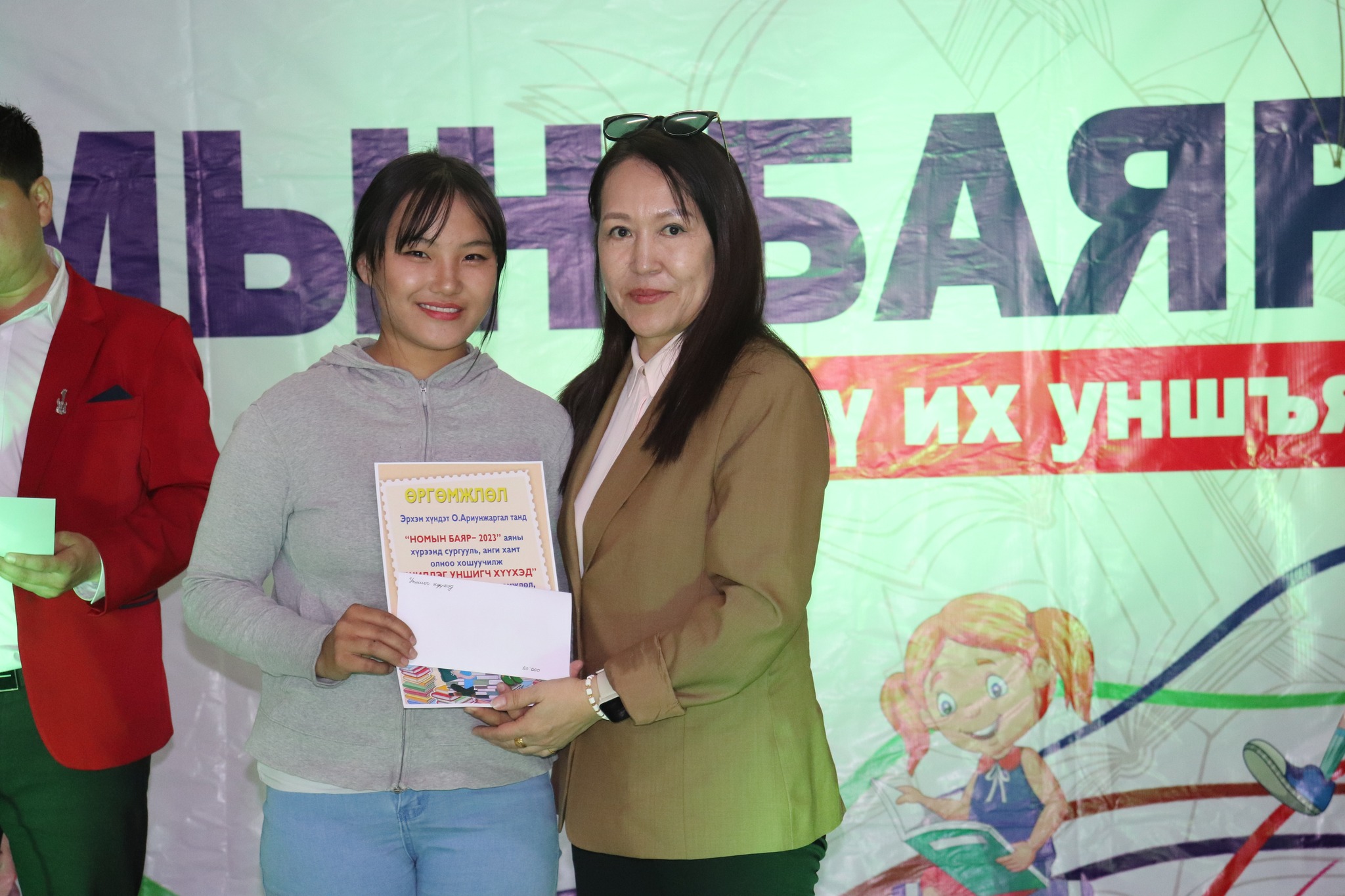 Тус үйл ажиллагаанд аймгийн Соёл, урлагийн газар, Төв номын сангийн төлөөлөл оролцож номын сайн нөхөр, уншигч хүүхдүүддээ амжилт хүслээ. Энэ үеэр “Тэргүүний уншигч” Д.Нацагдорж тэмдэгтнээр Орхон сумын Ерөнхий боловсролын сургуулийн Ж.Одгэрэл багштай 4б ангийн хамт олон, мөн тус сургуулийн 10а ангийн сурагч Отгонхүүгийн Оюунчимэг нар шагнуулав.
